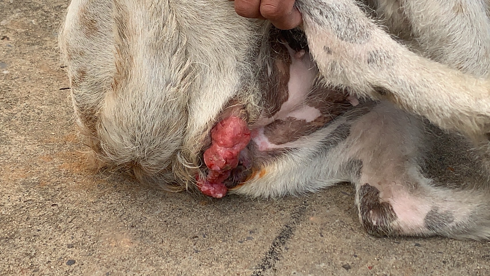 อาการที่พบ ก้อนเนื้องอก สีแดงหรือชมพู และมีเลือดออก มีอาการเจ็บปวดได้ มักพบที่อวัยวะเพศ(จากการผสมพันธุ์)